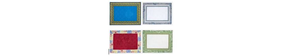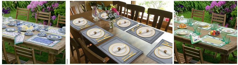 Below ... "Table Runner & Placemats Ensemble Sets" are for Dining Tables 6 Ft to 20+ Ft Long in Combinations of: 1-3 Table Runners, 8 - 20 Placemats, 8 - 20 Napkins, and 2 - 5 Tidy Bread Baskets for rectangular dining tables 48" to wider and from 6 Ft to 20+ Ft Long.
