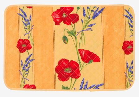 Tissus Toselli Red Poppies and Lavender on Yellow Design 18" x 18" Napkins in Plain Cotton    Tissus Toselli Red Poppies & Lavender on Yellow 8" x 8" TIDY 4-Corner Tie-Up Stain-Proof Coated Cotton Bread Basket