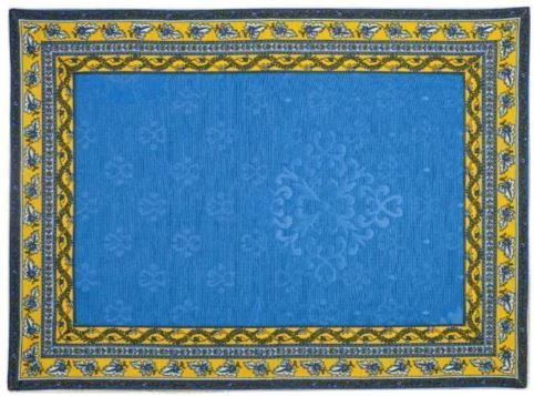 Enhance your Dining Tabletop with the French Provence MARAT Avignon 4 - 8 Place Setting, 19-Piece Ensemble Set of 1- 60" x 20" Blue Jacquard Delft Center Table Runner | 8-Matching 19" x 13" Placemats, 8-18" Square Matching Cotton Table Napkins & 2-Matching 8" Square Tidy Fabric Bread baskets.