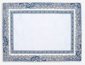 Enjoy a Blue/White/Grey Color Essance of Blue Sky on Your Dining Room Table. Seat 2-12 Dinner Guests on a 6 Ft - 12 Ft dining table.  Includes 12 - Blue & White 19" x 13" Placemats |  12 - Blue Calisson Buds on White 18" Cotton Napkins | 3 - Tidy 4-Corner Tie Bread Baskets!  For tables 40" to wider.