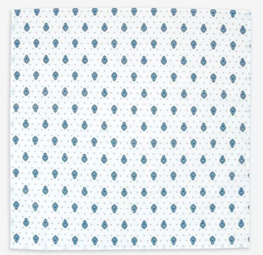 MARAT Bastide Cadre Border 19" x 14" Rectangular Placemat White Delft Center with White and Blue Border   French Provence Marat Bastide Allover Blue Calissons on White 18" x 18" Napkins in Plain Cotton   Marat Bastide Blue & White 8" x 8" Square TIDY Fabric Bread Basket in Coated Cotton with Corner Tie-Laces