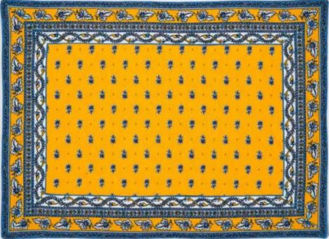 $470 and You Enjoy the Most-Loved Colors for "Sunny Provence France".  This 38 Pcs Ensemble Set Presents a Majestic Tabletop to Cheer Every Dinner Guest...for seating 4-16 Guests within your dining room, outdoor garden or terrace on a 6 Ft - 116 Ft dining table and at least 48" Wide.  The Ensemble Set Includes 2 - 60" x 20" Jacquard Woven Yellow Delft Table Runner with Blue Filigree Border | 16 - Blue Border on Yellow Placemats |  16 - Blue Buds on Yellow 18" Cotton Napkins | 4 - Tidy 4-Corner Tie Bread Baskets!