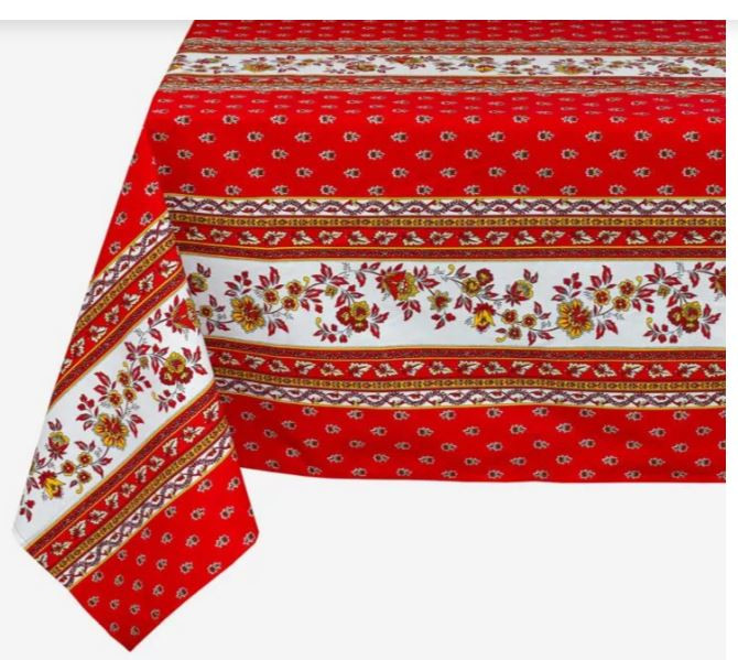 Stain-Proof Acrylic-Coated Cotton Tablecloth Cleaning Instructions: Use a Damp Cloth for Spills or Spots Cleaning immediately, but if spills are allowed to dry onto the cloth, then Machine Wash the Tablecloth on a Warm or Cold Gentle Cycle, and then Line-Dry the Tablecloth.