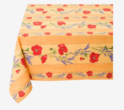 Perfectly sized for tables 30" - 40" square or 30" - 40" round diameter... this 60" square tablecloth provides a 10+ inch edge-drop on a 40 inch square or round table, elegantly framing your table. Its vibrant Red Poppies and Lavender on Yellow Floral pattern adds a soft splash of charm to any outdoor setting, creating a stunning Parisian or Provence "Bistro-Look" that captures the eye and a Red Poppies Garden Theme...All Is Beautiful... conversations.