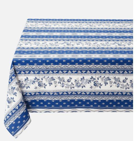 Perfectly sized for tables 30" - 45" square or 30" - 45" round diameter... this 60" square tablecloth provides a near 10 inch edge-drop on a 45 inch square or round table, elegantly framing your table. Its vibrant Blue/White pattern adds a bold splash of color and charm to any setting, creating a stunning Parisian or Provence "Bistro-Look" that captures the eye and sparks conversations.